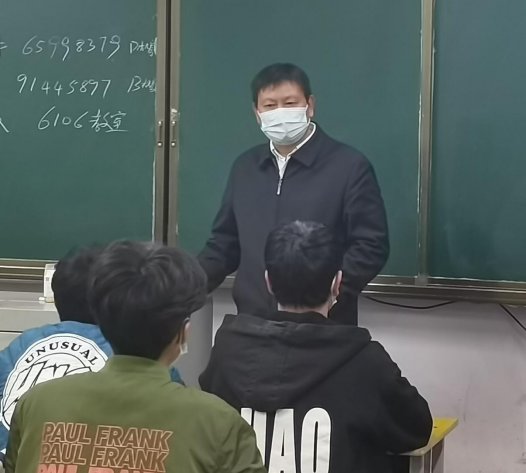春风化雨,润物无声。为进一步增强学生疫情防控意识,构建校园安全生活环境,4月1日晚,校长李清臣和党委副书记赵振然等领导,利用晚自习时间深入信息工程、汽车与机电等学院一线教室,就疫情防控最新政策、校园封闭管理的背景和意义、疫情防控我们该怎么做等问题与学生面对面讲解、沟通和交流。