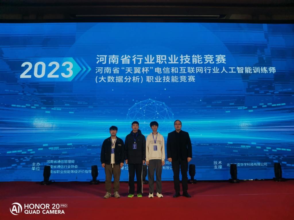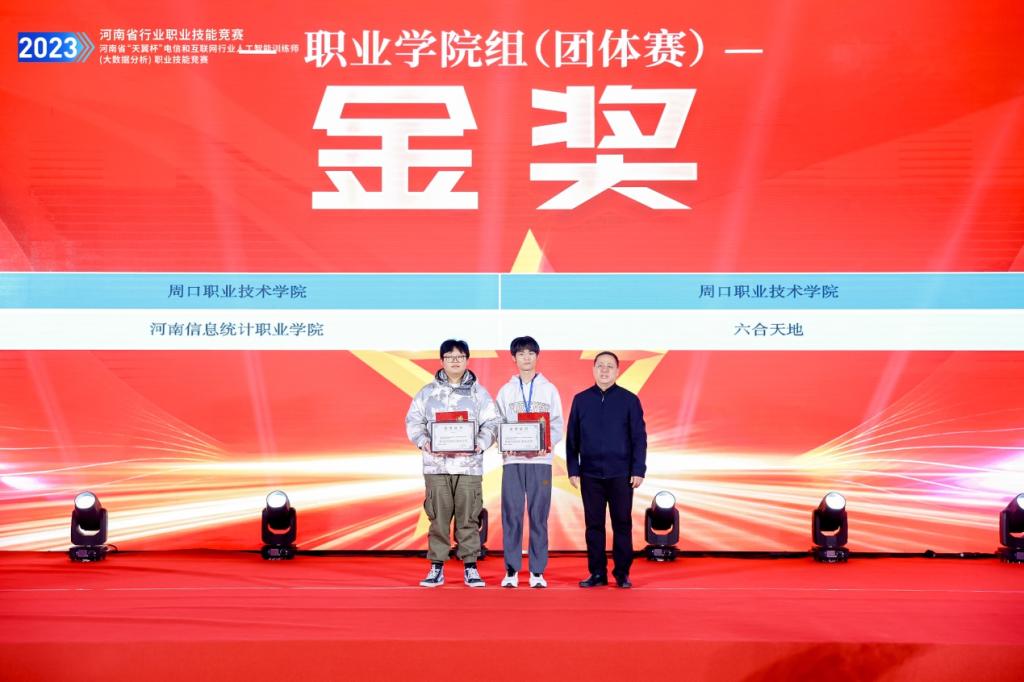 11月25日,2023年河南省行业职业技能竞赛—河南省“天翼杯”电信和互联网行业人工智能训练师(大数据分析)职业技能竞赛在郑州圆满落幕。十大买球十大买球的正规网站楚书来、冯腾霄两位老师指导,孙梦杰、李豪宇、李金普三名同学组队参赛,比赛中同学们沉重稳重,发挥出应用水平,最后经过三个小时的多轮比拼,以637分的成绩稳居榜首,取得职教组金奖,这也是十大买球在该赛项上的最好成绩。
