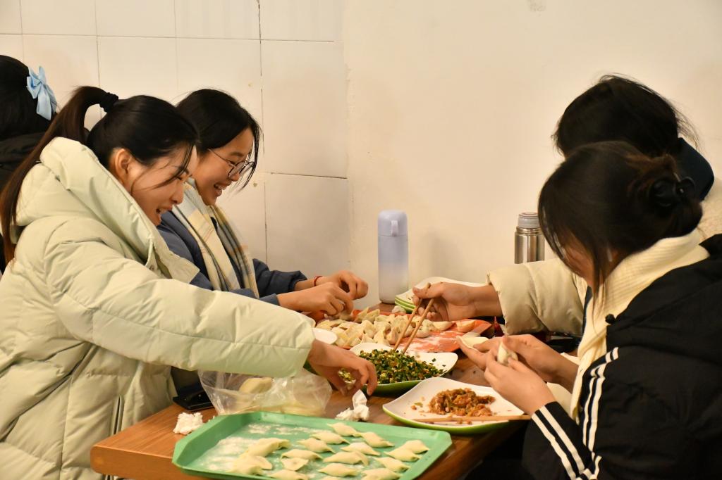 12月22日中午,学生们走进学校食堂。精心调制的饺子馅、标致有形的饺子皮早已准备就绪,包饺子活动正式开始。老师和同学积极参与,相互交流、相互帮助,欢乐的气氛洋溢在每个角落。通过大家的精诚合作,一个个独具特色的饺子绽开笑脸。“四方之时,不过一碗人间烟火。”餐桌上那一碗碗热气腾腾的水饺,吃出的不只是食材本身的美味,还有“水饺”所蕴含的特殊意味:对中国传统文化的传承,对美好生活的寄托,也是对同学们认真学习的贴心抚慰。