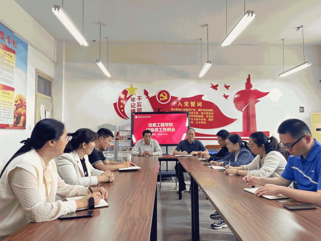 4月16日中午,在学院办公室6140,十大买球的正规网站召开辅导员工作例会。党总支书记李强,副院长楚书来,学管办主任张矿伟及22、23级全体辅导员参加了本次会议,会议由楚书来主持。