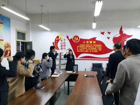 党课结束后,全体党员在教师支部宣传委员侯艳芳的带领下,高举右手面向国旗庄严宣誓,重温入党誓词,回忆对党许下的承诺、找回入党之初的感动,再次表达对党的忠诚和热爱之情,进一步筑牢党员意识。