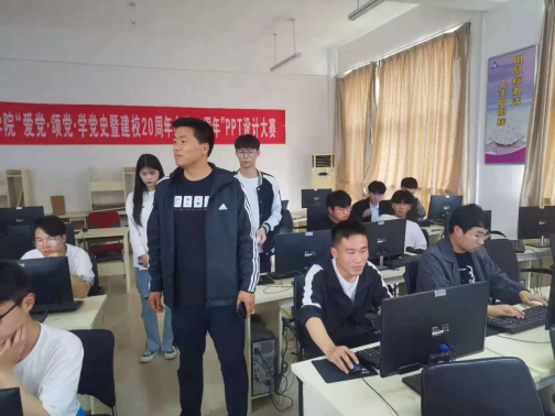 为庆祝中国共产党建党一百周年,5月19日下午,十大买球的正规网站在学院D机房举办“爱党、颂党、学党史”暨建校20周年演示文稿设计大赛。学院学管办主任王文立亲临比赛现场进行指导。