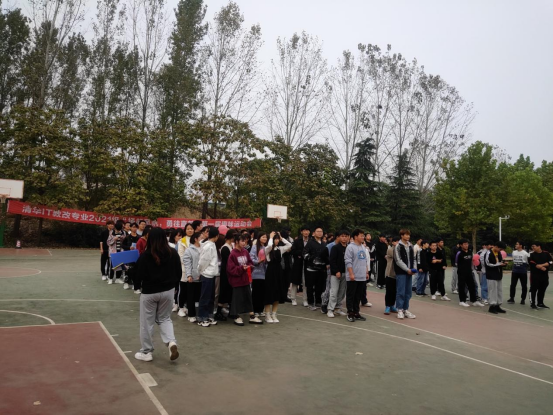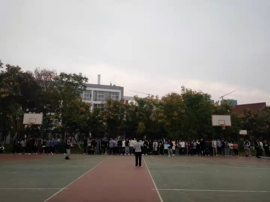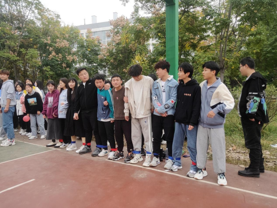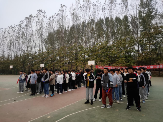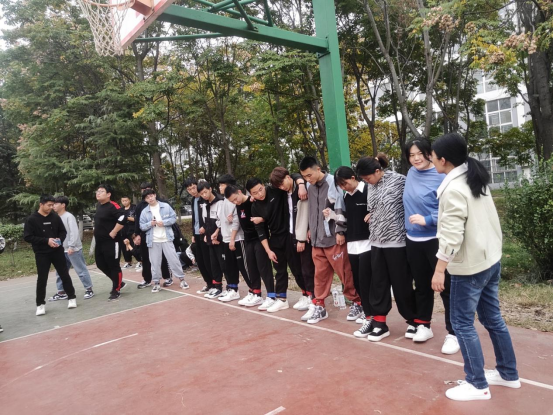 当天下午,21级全体同学结束本周学习安排,来到校内篮球场东面,一百三十多位同学共聚蓝天白云之下,携带者美好心情开启下面的活动。本次所有活动遵循着友谊第一,比赛第二,安全为上的主旨。