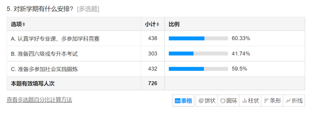 面对新学期的安排与规划,大多数学生对新学期信心满满,经调研显示:60.33%的学生决定在新学期认真学好专业课,多参加学科竞赛;41.74%的学生准备筹划四六级和专升本考试:59.5%的学生准备多参加社会实践锻炼。