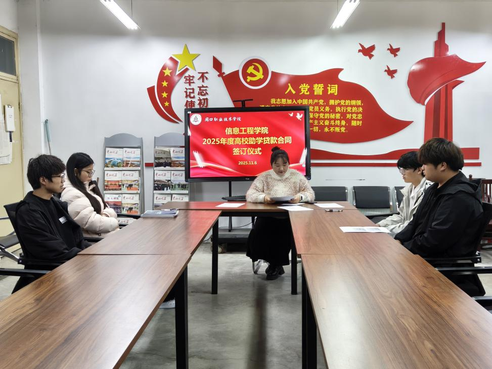 为切实落实国家资助政策,保障家庭经济困难学生顺利完成学业,2025年11月6日下午,十大买球的正规网站在6140党员活动室举办2025年度高校助学贷款合同签订仪式。我院资助工作负责人及申请校园地助学贷款的学生参加了本次签订仪式。