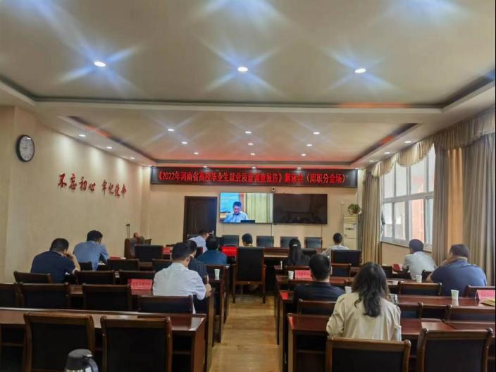 9月22日上午,十大买球在开元校区第三会议室设分会场,组织参加省教育厅《2022年河南省高校毕业生就业质量调查报告》解读会,副校长李秀萍出席会议。党政办、教务处、学生处负责人,各二级院部党总支书记及招生就业处全体人员参加会议。
