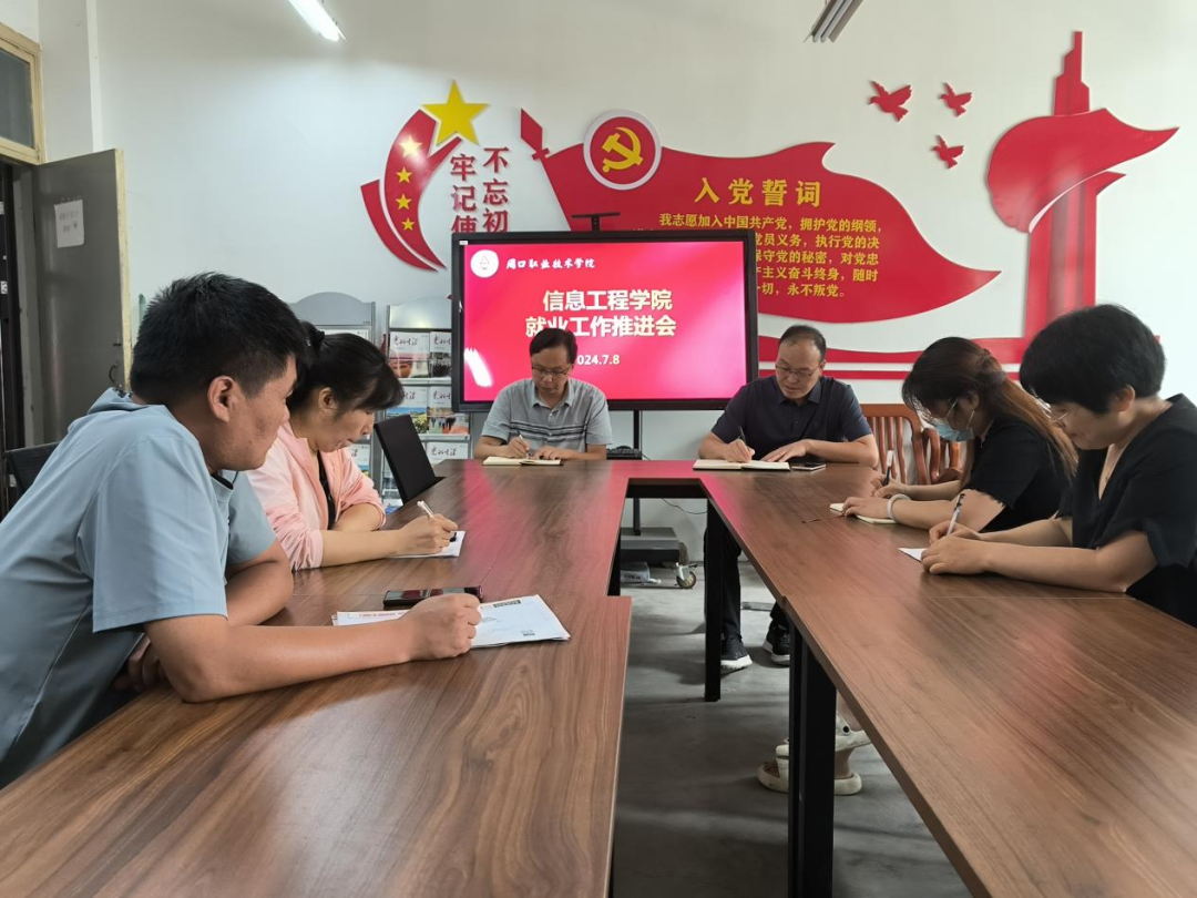 2024年7月8日上午10点, 十大买球的正规网站在6140办公室召开了2024届毕业生就业工作推进会, 党总支书记宋良鹤、学管院长楚书来和21级辅导员参加了此次会议。