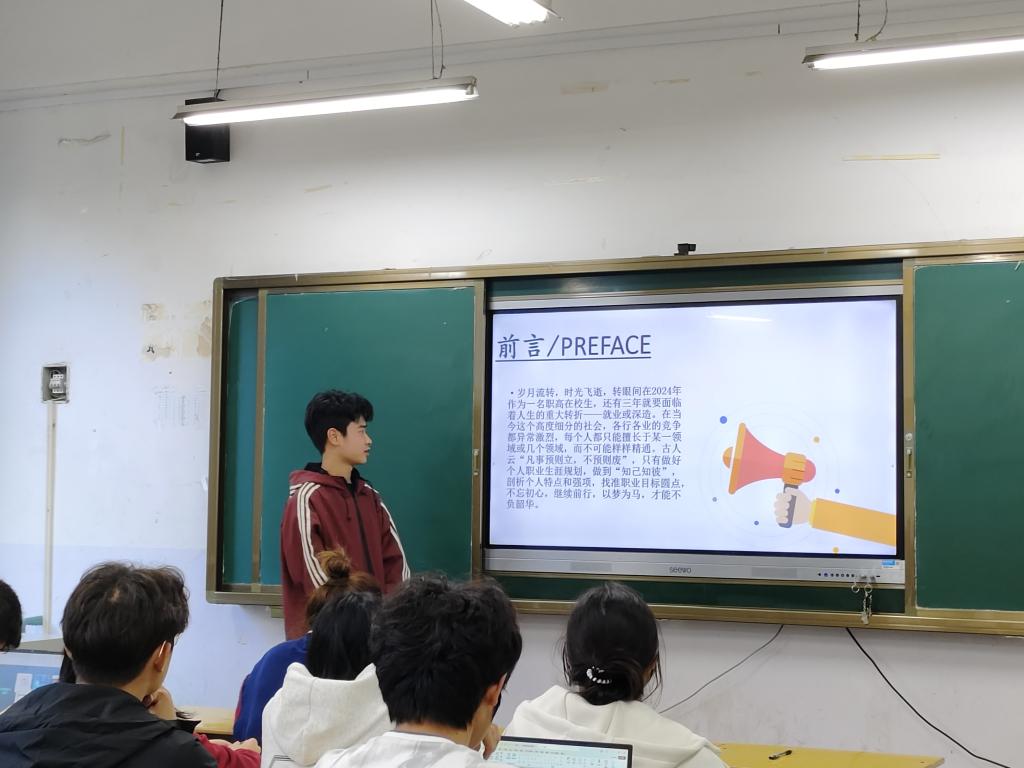 比赛伊始,由王瑞雅老师向我们介绍比赛规则,随后宋书记向同学们详细的介绍了大赛的比赛内容,两个赛道的选手按照事先抽签排序,依次进行演讲。选手结合个人职业生涯规划,阐释职业价值观等,综合分析所学专业及就业前景,并确立符合自我未来职业规划的目标。老师对同学们对未来职业规划的积极探索表示认可与鼓励,并希望大家能够落实落细自身职业规划,一是要进一步明确定位和实施路径;二是要在职业核心技能上,讲好职业故事,让更多人感受到职业的价值;三是要熟悉赛事规则,完善展示作品。