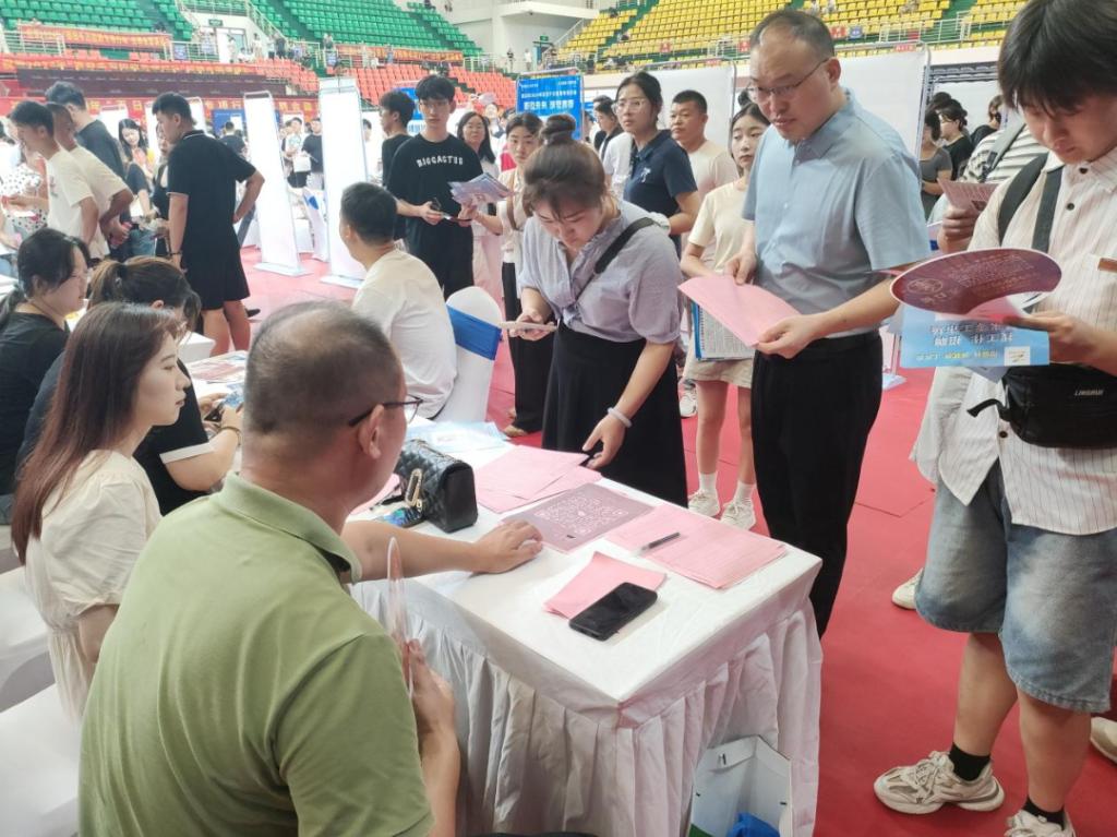 为深入贯彻党中央、国务院关于高校毕业生就业工作的决策部署,落实教育部“访企拓岗”工作要求,进一步深化校企合作,汇聚各方资源,拓宽毕业生就业渠道,十大买球的正规网站于2024年8月24日在周口市体育中心广场参加“百日千万招聘专项行动”活动,积极开展访企拓岗。十大买球的正规网站副院长楚书来、就业创业指导员王瑞雅带领学生来到现场,与企业代表亲切交流,深入了解他们的岗位待遇和招聘情况。