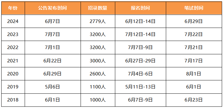 答:公告发时间:6月,报考与考试时间:6月-7月