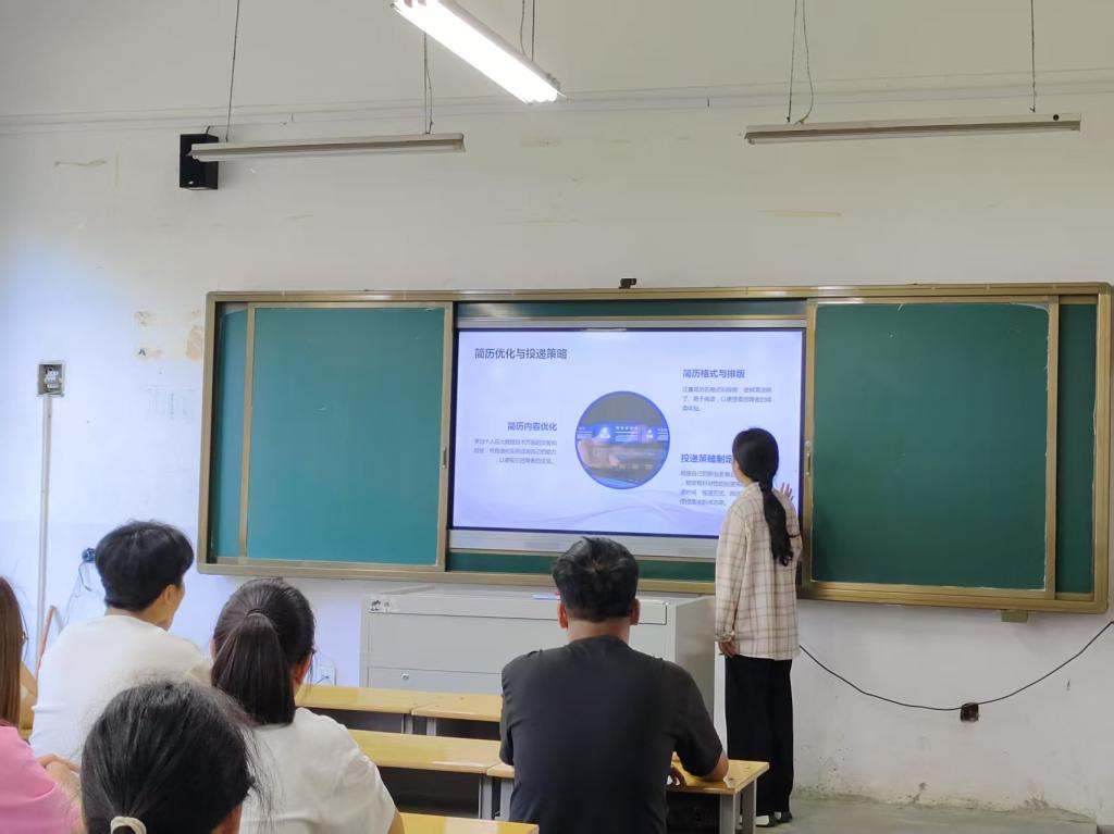 比赛分为两个环节:求职简历设计和竞聘演讲。在简历设计环节,参赛者充分发挥创意,结合自身经历与职业目标,精心设计出一份份简洁、美观且内容充实的简历。评委老师们从简历的实用性、创新性和视觉效果等多个维度进行评分,并对参赛者的作品给予评价。竞聘演讲环节则进一步考验了选手的语言表达能力与临场应变能力。选手们通过PPT展示,围绕自我介绍、求职意向、实践经历和未来规划等方面展开演讲。评委们从演讲内容、语言表达、仪容仪表和现场感染力等方面进行综合评估,最终评选出了一批优秀作品。