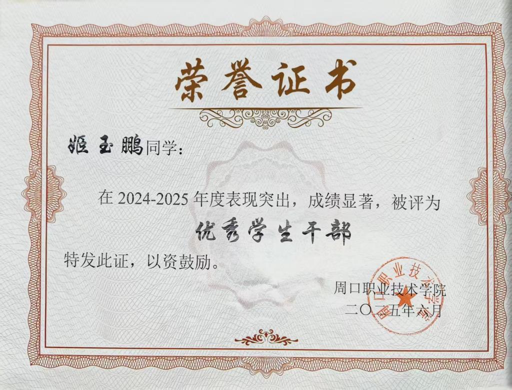 作为一名信工学子,姬玉鹏将“励德励能、志存高远、德才兼备、知行合一”的校训刻入日常。学业上,她始终以课堂为“充电站”,以专业排名第一的优异表现,连续斩获学业类奖项。她深知知识需转化为能力,课上深耕代码逻辑与专业理论,课下泡在实验室攻克实操难题,为科创实践筑牢根基。