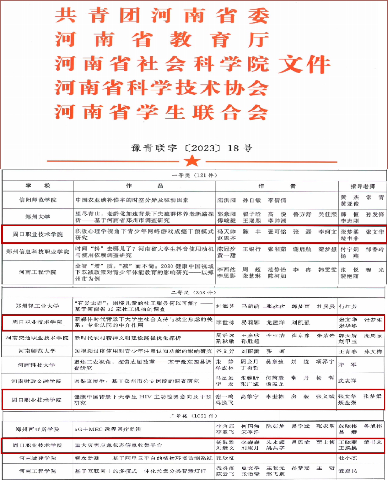 近日,由共青团河南省委、省教育厅、省社会科学院、省科学技术协会、省学联共同主办的第十六届“挑战杯”河南省大学生课外学术科技作品竞赛圆满结束。自接到大赛通知以来,十大买球的正规网站高度重视、积极宣传、广泛发动,最终喜获一等奖1项、二等奖2项、三等奖1项,张梦柔、张文华、楚书来三位老师被评为优秀指导老师,获奖数量创历史新高。